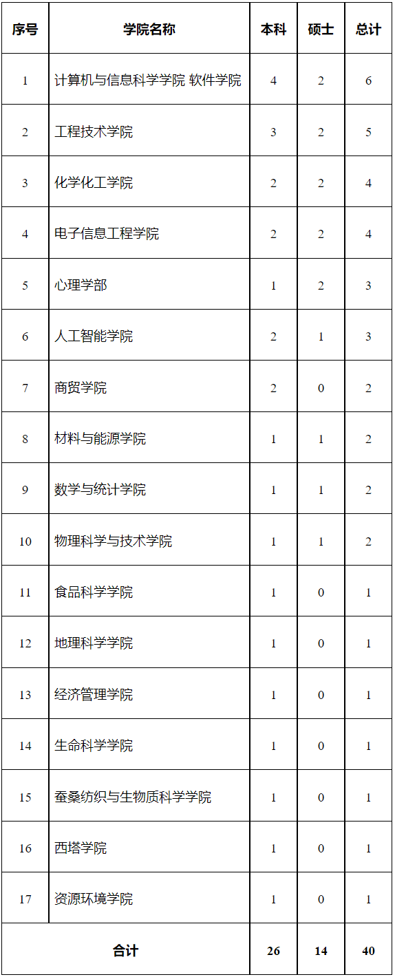 用于奖励品学兼优、综合素质突出的学生。主要奖励计算机与信息科学学院 软件学院、工程技术学院、化学化工学院、电子信息工程学院、心理学部、人工智能学院、商贸学院、材料与能源学院、数学与统计学院、物理科学与技术学院、食品科学学院、地理科学学院、经济管理学院、生命科学学院、蚕桑纺织与生物质科学学院、西塔学院、资源环境学院共17个学院在读的纳入全国招生计划内的学校全日制本科二年级及以上年级本科生及纳入全国研究生招生计划的基本学制年限内全日制非在职硕士研究生(二年级和三年级)。